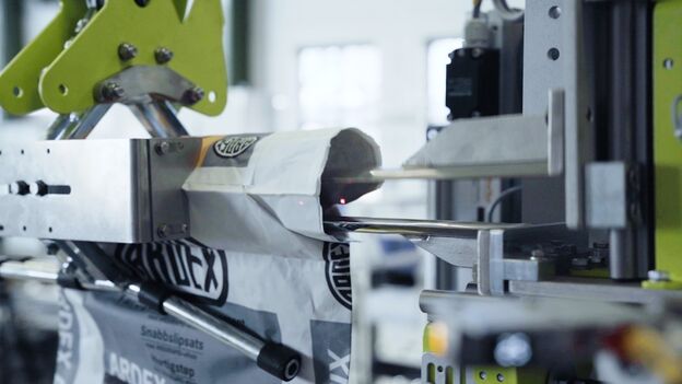 To minimize incorrect filling, the existing filling system was expanded to include the ValvoDetect feature from Greif-Velox. Sensors are used to check whether the bag valve is properly opened before the filling process. Faulty bags are thus sorted out in advance. This check ensures that only correctly filled and properly sealed bags end up on the pallet.